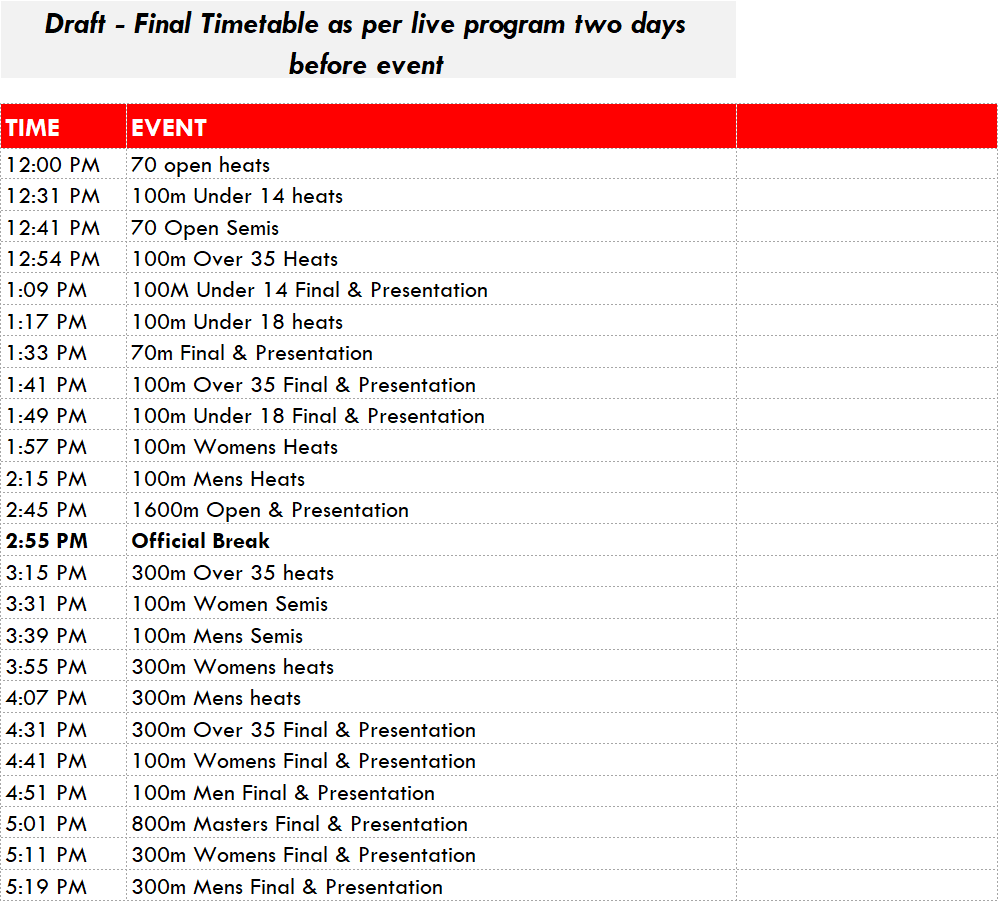 Draft Timetable