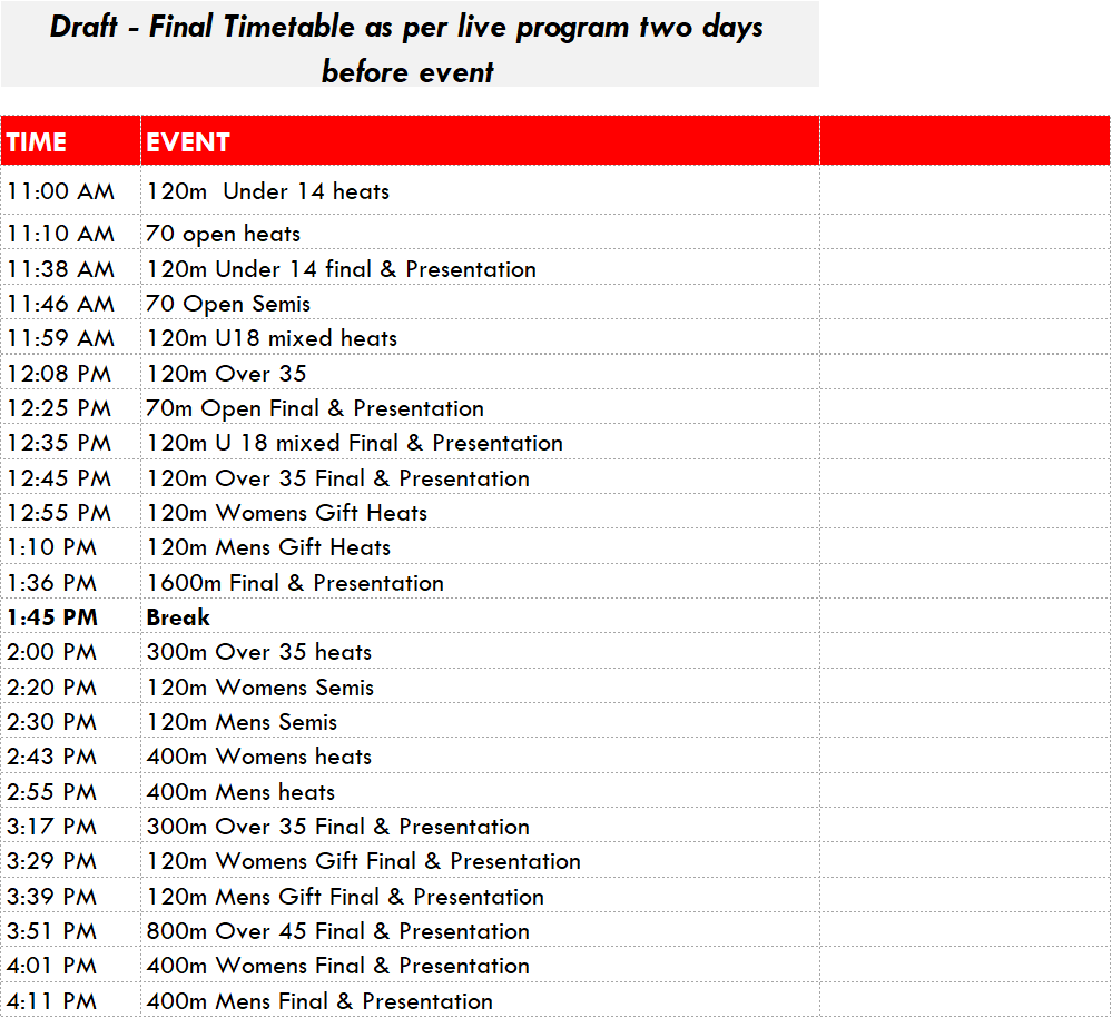 Draft Timetable